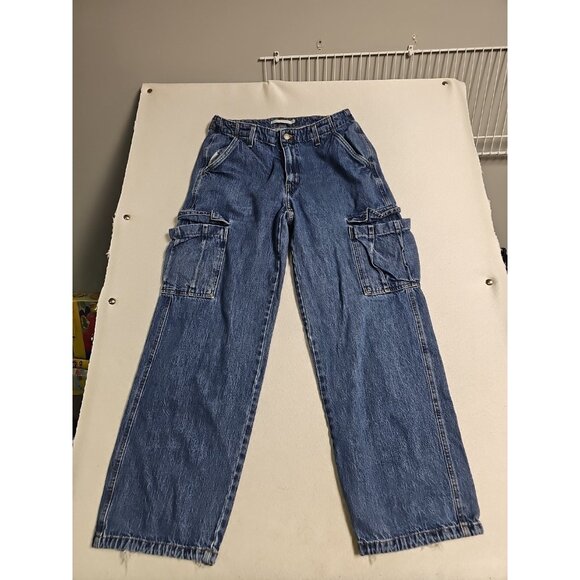 The Levi’s ‘94 Baggy Cargo Jeans in size 30x32 are a stylish and comfortable choice for women looking for a bohemian vibe. Made from 100% cotton with a medium wash, these wide-leg jeans feature a solid blue color and a relaxed fit. The mid-rise waist and relaxed fit make them breathable and lightweight, while the cargo pockets add functionality. These jeans are a trendy and versatile addition to any wardrobe, perfect for a casual or laid-back look.