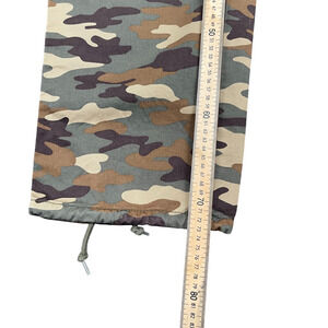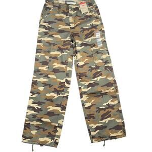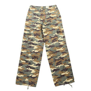 The Levi's '94 Camo Cargo Pants in size 26 x 30 are a stylish and versatile addition to any wardrobe. Made from 100% cotton canvas fabric, these baggy wide-leg pants feature a high rise and relaxed fit, perfect for all-day wear. The grape leaf paratrooper camo pattern adds a unique touch to the design, while the cargo pockets and ankle ties provide functionality and flair. With a zip closure and various pockets, these pants are suitable for all seasons and can be easily machine washed for convenience. Perfect for women who appreciate army-inspired streetwear fashion.