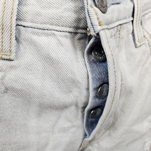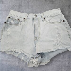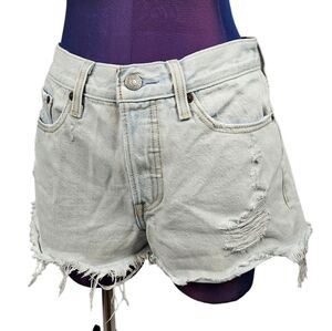 In like new condition Levi's Acid Washed High Waisted Button Fly Raw Hem Jean Shorts Size 27 Women's.