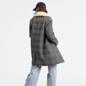 Levi’s Amaya Wool Blend Coat Houndstooth Plaid Faux Fur Collar 2 Two Button Front Pockets Long Sleeves Longline Thick Jacket Winter Cozy Style # S40117