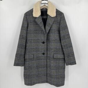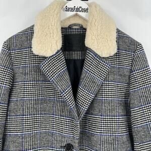 Levi’s Amaya Wool Coat Houndstooth Plaid Faux Fur Collar Women’s Size Medium