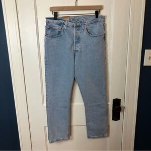 Stylish Levi's jeans. Light blue color. Ankle length. Cropped fit. Perfect for casual wear.