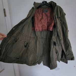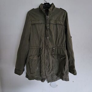Levi's Army Green 100% Cotton Long Full Zip Distressed Utility Jacket Sz Medium