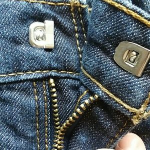 Perfect condition. Manufacture distressed which adds style to any outfit. Adjustable waist on left and right sides, hook closure