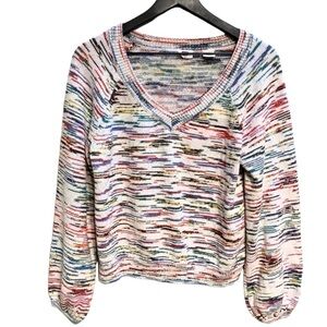 Multicolor knit (75% Cotton, 25% Polyester). Sweater. Long sleeves. V-neck.