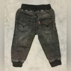 The Levi's Knit Denim Joggers were created to strike a perfect balance between contemporary style and casual comfort for the littlest Levi's lovers. The result is this roomy loose fit leg with the comfiest parts of a jogger-the rib knit waistband and snug ankle cuffs- which allow babies a cozy, stay-put fit as they wiggle around.