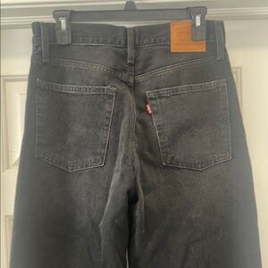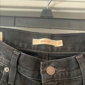 Levi’s Baggy Dad black distressed jeans with a relaxed fit. Perfect for casual wear.