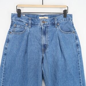 Levis Baggy Dad Jeans Womens 29 Blue Pleated Wide Leg 100% Cotton Denim