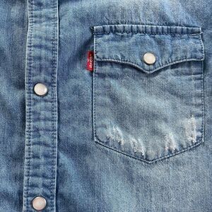 Levi's Barstow Western Pearl Snap Distressed Button Down, Girls Size Large 12-13