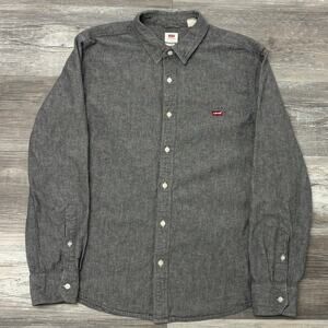 Levis Battery Housemark Slim Gray Mens Large Minimalist Long Sleeve Button Up Shirt