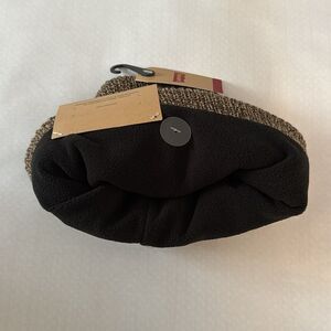 This is brand new with tags. The fabric content 100 % acrylic. The color is brown. The fleece lining is 100 % polyester.