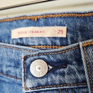 Levi's Big E Wedgie Straight Size 29 Casual Light Blue Ripped Cropped Ankle Jean