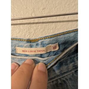 Levis Big E Womens High Loose Taper Jeans Size 30 Light Wash Distressed Stretch