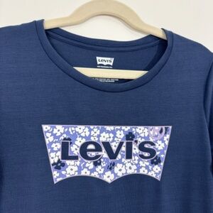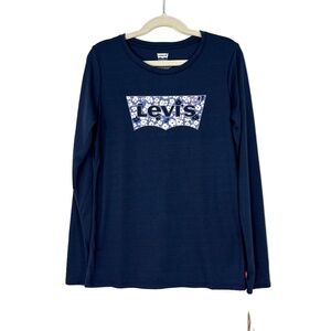 Levi’s Big Girls Size Large Crown Blue Logo Floral Graphic Long Sleeve T-Shirt