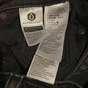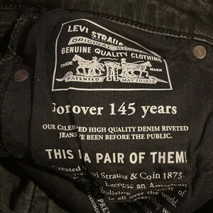 Classic black denim jeans with signature tan leather label. Timeless style.