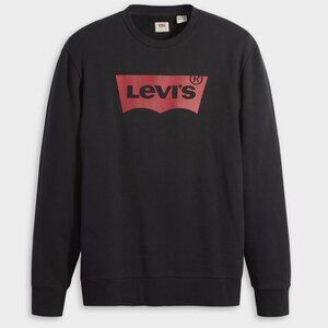 Levi's Black Batwing Logo Standard Fit Fleece Crewneck Sweatshirt Size M