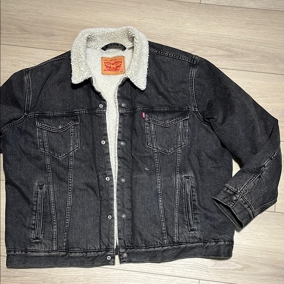 Levi's Black Denim Jean Jacket Coat with Cream Sherpa Lining Size XXL