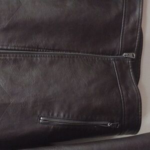 Classic black faux leather bomber jacket by Levi's size small. Features front zipper and chest pockets. Timeless style for versatile wear.