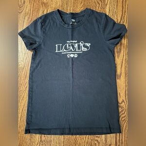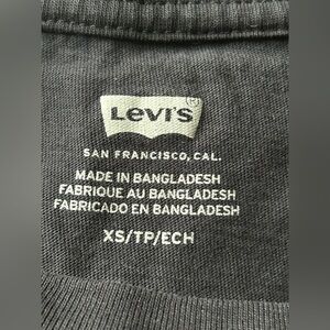 Levi’s graphic tee, women’s black slogan shirt, XS crew neck t-shirt, classic black logo top, cotton short sleeve tee, minimalist streetwear shirt, everyday layering t-shirt, festival graphic tee, casual fitted top XS, vintage style slogan shirt, essential black cotton tee, weekend casual outfit top, San Francisco inspired tee, peace love earth shirt, wardrobe basic black tee, lightweight summer t-shirt, timeless graphic logo shirt, women’s XS black tee