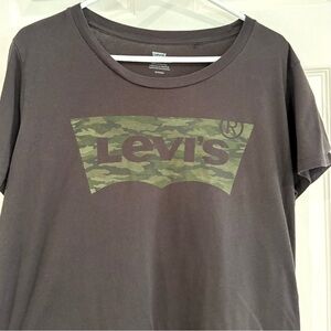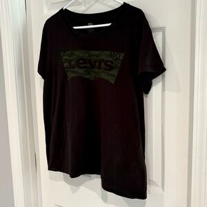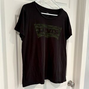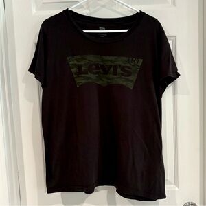 Levi's Black Green Camo Batwing Logo Tee Shirt Women Plus Size 1X Crew Neck Short Sleeve