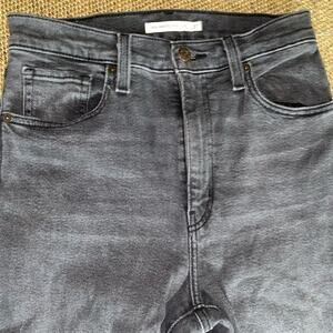 Super cute and versatile Black stretch LEVI’S high waisted mom jeans. Size Women’s 27 waist 29 length. Regular zip front. 5 pocket Red Levi’s pocket tag and Levi Strauss & Co patch w