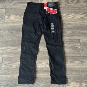 These Levi's black jeans are crafted from durable denim, offering a classic straight leg fit that suits any occasion. Their timeless design ensures they remain a versatile staple in your wardrobe, effortlessly pairing with various tops for a polished look.