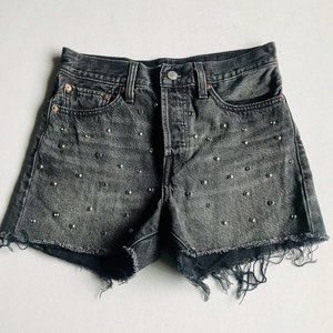 Levi’s Black Wedgie Short Cutoff Studded Rhinestone Size 27 Button Fly