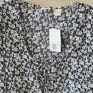 NWT Levi's black and white floral Embry tie front bishop blouse