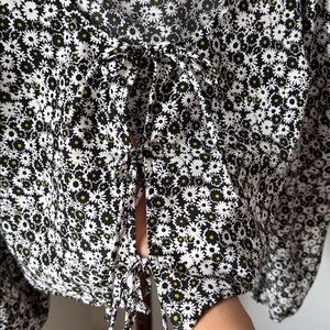 Elegant Levi's blouse with floral pattern. Features a tie front and long sleeves.