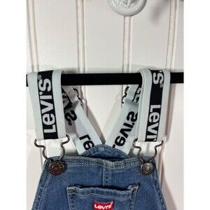 This Levi's one-piece is perfect for your little one! With blue straps and a white Levi's logo, this shortall is both stylish and comfortable. It's designed for unisex babies and toddlers aged 18-24 months, and features a cute blue character accent. Measurements: Waist 11 inches, Length 20 inches and Inseam 4 inches. The straps are adjustable and the piece is made with high-quality materials. This item is a great addition to any baby's wardrobe, and is perfect for everyday wear or special occasions. Comes from a cat free and smoke free environment.