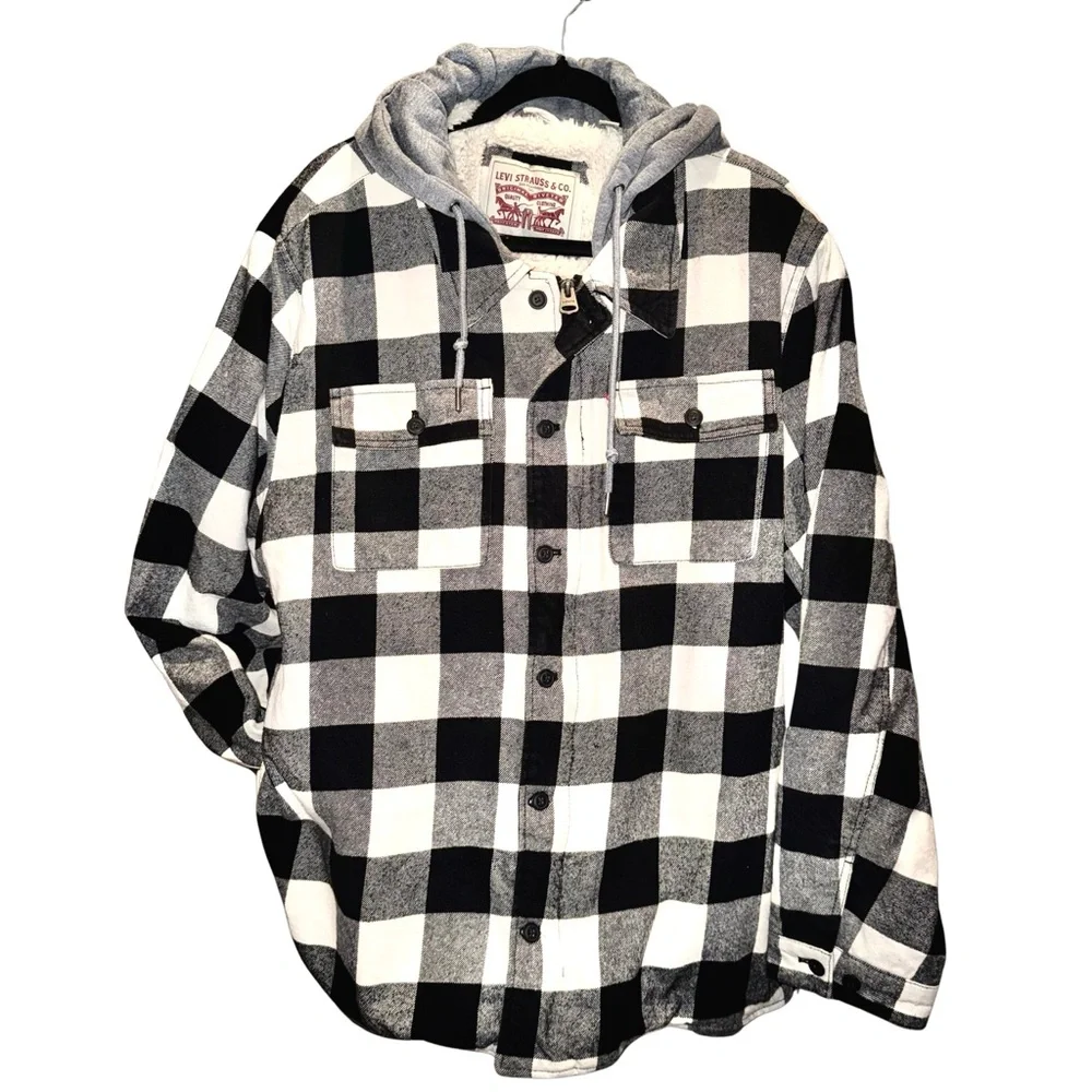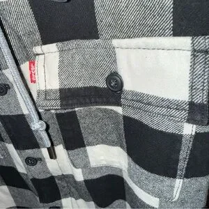 Levi's Black and White Plaid Hooded Flannel Jacket