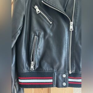 Levi's Black faux Leather Jacket with Red and White Stripes