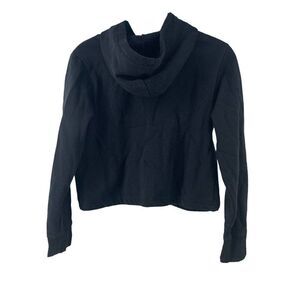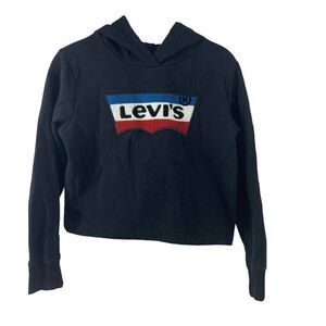 Levis Black Cropped Pullover Hoodie Textured Logo Girls Size Large Fleece Lined Sweatshirt Casual Top