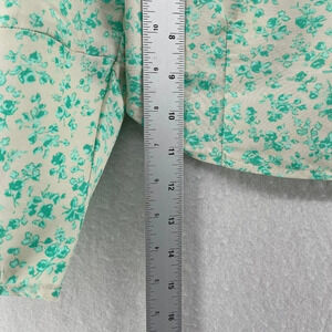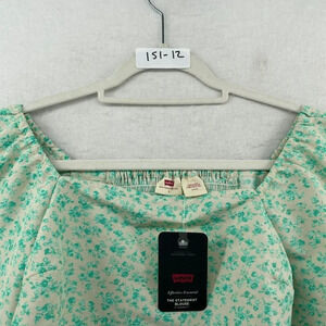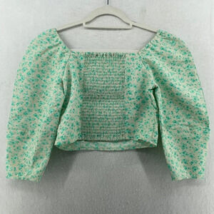 Levi's Blouse Women's Sz S Green Yvie Standard Fit Floral Puff Sleeves Cropped