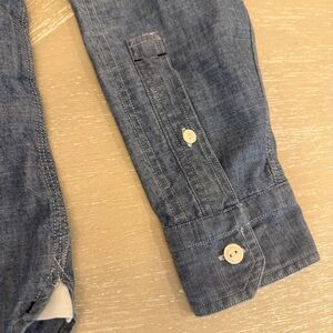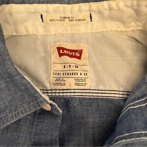 Embrace the classic style of Levi's with this blue casual button-down shirt, perfect for a laid-back look. Crafted from high-quality fabric-thin enough for warm months, it offers a comfortable fit and a timeless design. Ideal for everyday wear, this shirt combines durability with effortless style. Preowned.