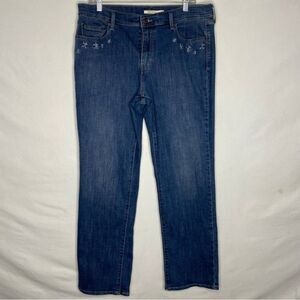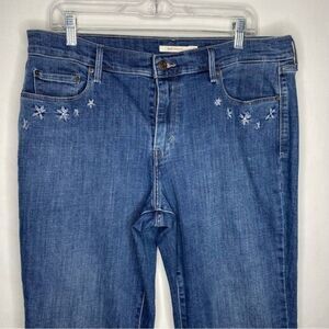 Levi's Blue Denim 505 Straight Floral Embroidered 5 Pockets Stretch Jeans 32.