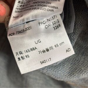 Classic Levi's denim jacket. Features button accents. Perfect for casual wear.
