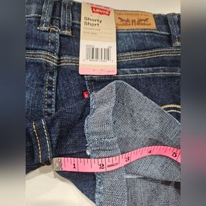 These Levi's shorty shorts showcase a dark blue wash with a stylish cuffed hem, offering a modern twist on a classic design. The durable denim material ensures long-lasting wear, while the subtle distressing adds a touch of character to your girls' casual wardrobe.