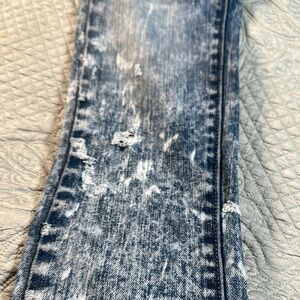 Experience timeless style with this Levi's blue jean jacket, featuring a distinctive distressed design and vintage appeal. The unique acid wash effect creates a mottled appearance, adding character and charm to your wardrobe. Perfect for those who appreciate a classic yet trendy look.