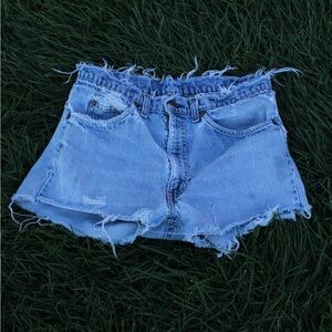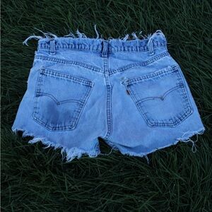 Stylish Levi's jean shorts. Distressed design. Perfect for casual wear.