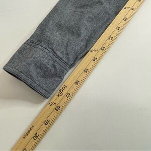 Stylish charcoal jacket with hood. Button-up front and chest pocket. Perfect for layering.