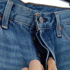 Classic Levi's jean shorts. Rolled hem. Comfortable fit. Very little stretch