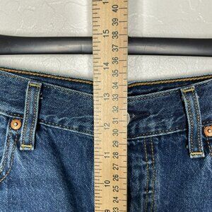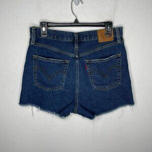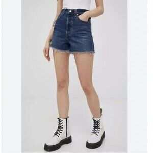 Levis Blue Medium Wash Ribcage Denim High Waisted Button Fly Shorts