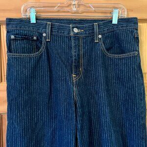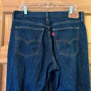 EUC Indigo Pin Stripe Levis. Straight leg, high waist, classic fit. They are marked 31/30 but if you look at the measurements they are marked incorrectly. They are a 34 waist. Please refer to pics for measurements. 100% cotton.