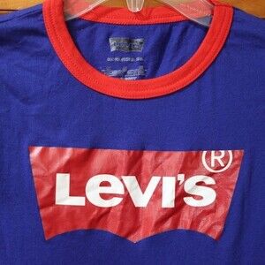 Levi’s Blue Ringer Spellout Logo Tee NWT Medium Youth Retro Graphic Shirt