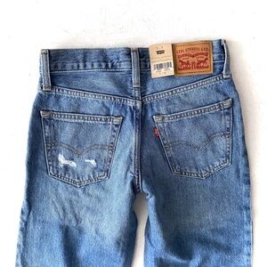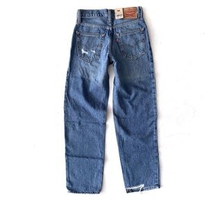 Classic Levi's straight leg jeans. Distressed style. Comfortable fit.