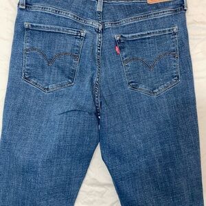 These Levi's blue jeans feature a timeless straight leg cut, offering a classic denim look with subtle fading patterns. Crafted from traditional denim fabric, they provide both comfort and durability, making them a versatile addition to any wardrobe.