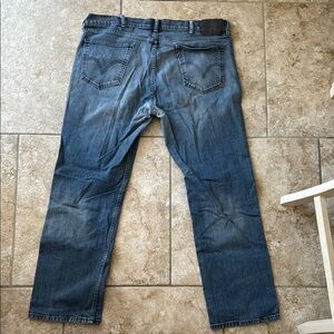 These Levi's jeans showcase a timeless straight-leg silhouette in a rich indigo blue. The medium wash and natural fading patterns offer a relaxed, lived-in appearance. Crafted from medium-weight denim, they provide comfort and versatility for everyday wear.