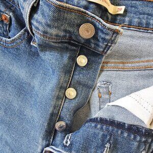 Classic Levi's straight leg jeans. Timeless blue denim. Perfect for casual wear.