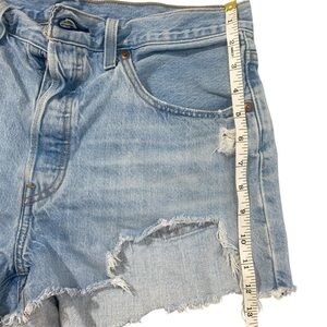These Levi's jean shorts boast a vintage-inspired design with a relaxed fit and high-waisted style. The distressed detailing and frayed edges add a touch of rugged charm, while the blue wash offers a classic, timeless appeal. Perfect for casual outings, these shorts provide both style and comfort. Pre-owned great condition buy responsibly Save & Bundle Size 31 waist 16” Length 12” 2” inseam